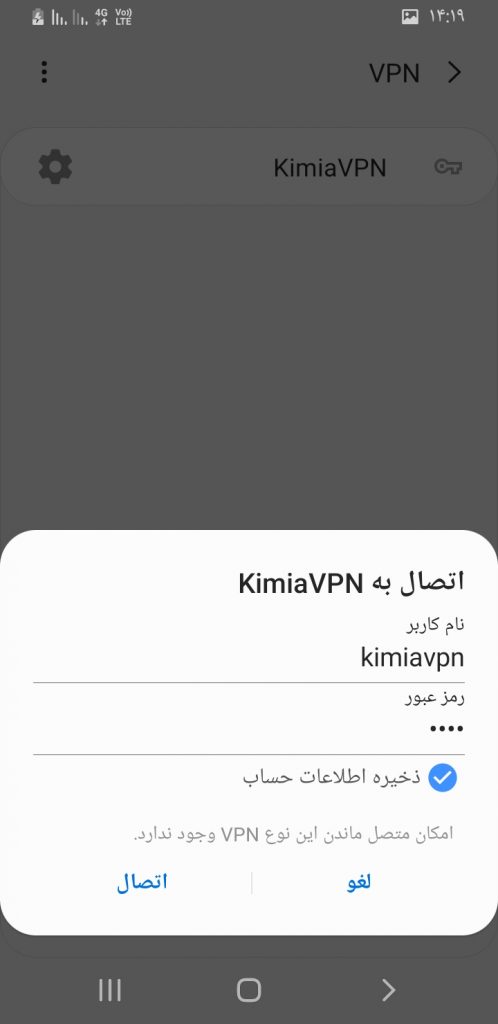 در قسمت Name و یا نام, KimiaVPN را تایپ نمایید