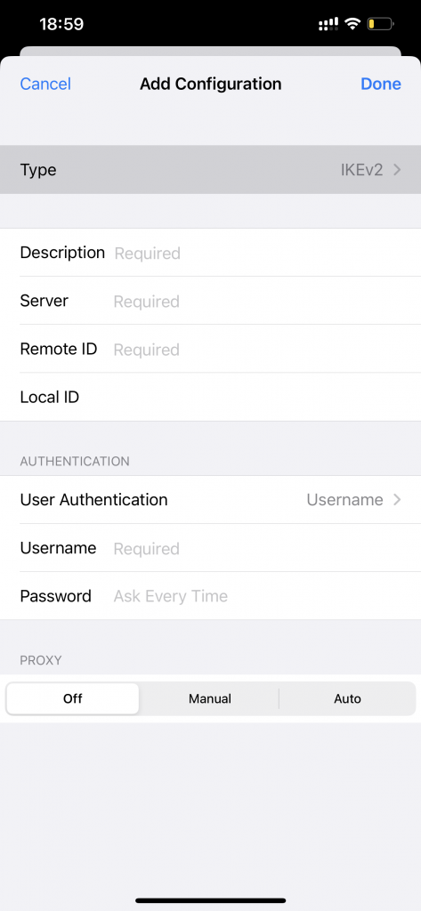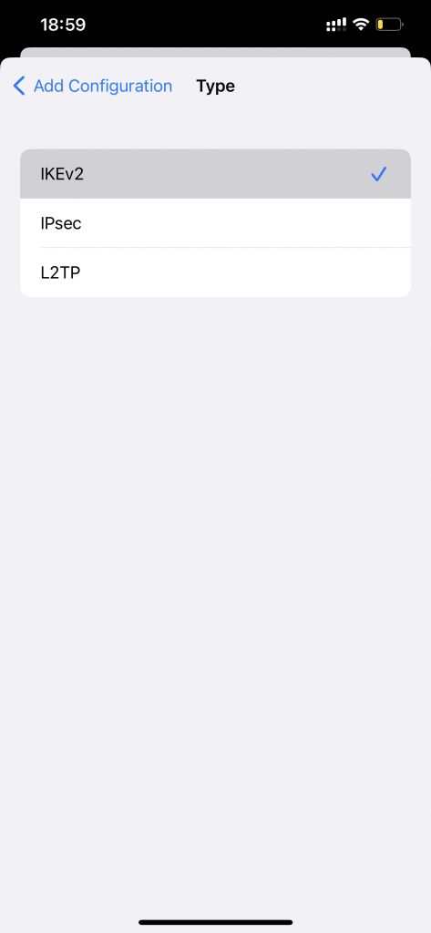 از قسمت بالای صفحه وارد Type شده و گزینه IKEv2 را انتخاب نمایید.