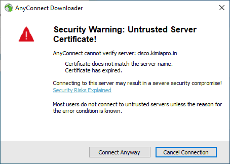 اگر به هر دلیلی با عکس زیر مواجه شدین بر روی Connect Anyway کلیک کنید.