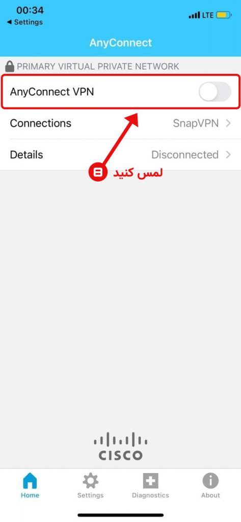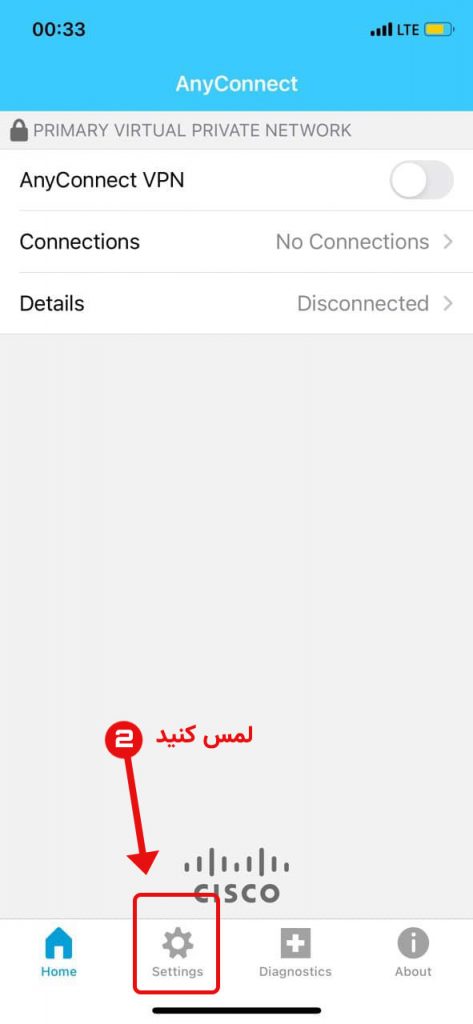 ابتدا برنامه Cisco AnyConnect را از اپ استور اپل دانلود کنید و بر روی گوشی خود نصب نمایید.