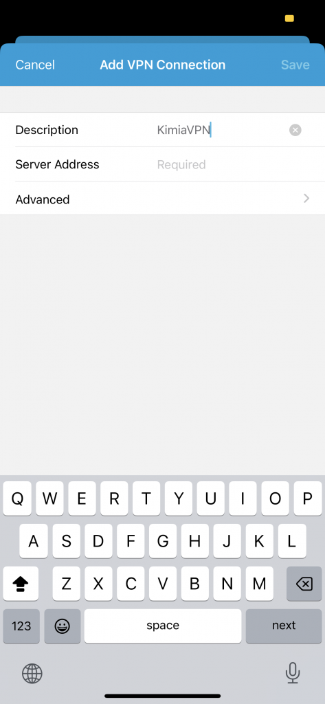 در قسمت Description نام KimiaVPN را تایپ کنید.