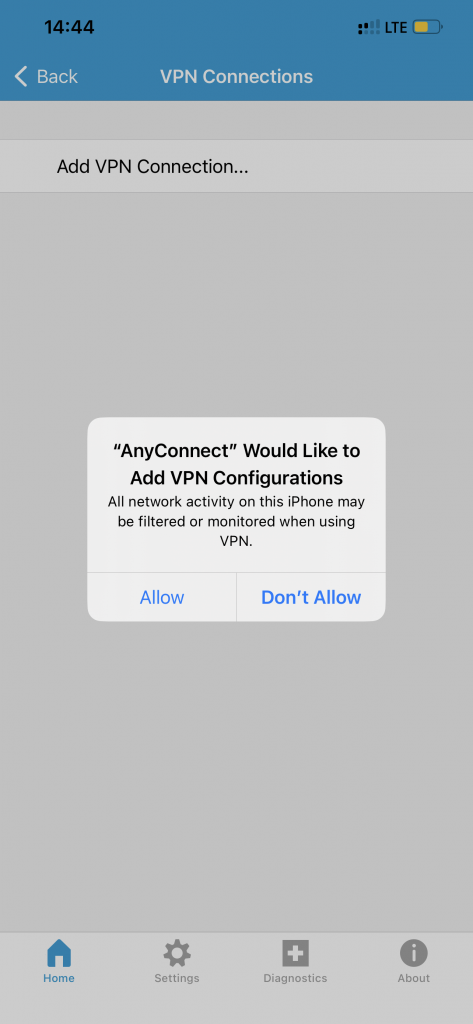 بر روی گزینه Add VPN Connection کلیک کنید.